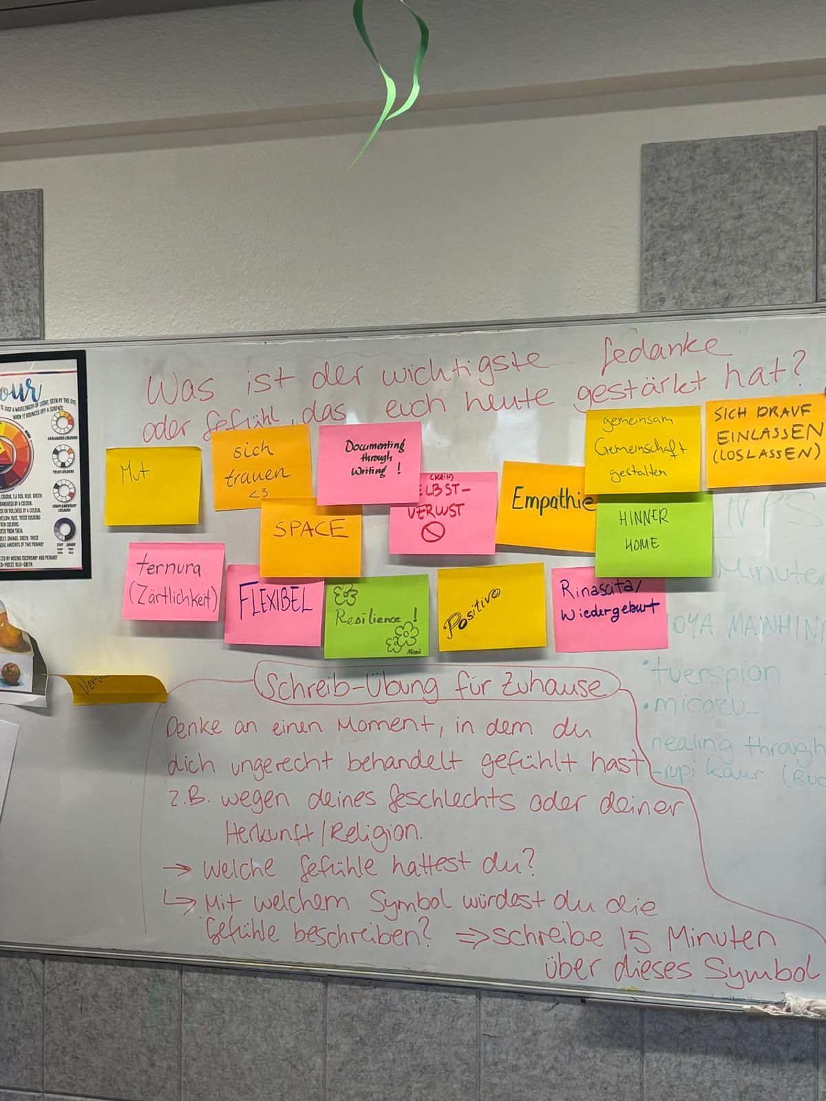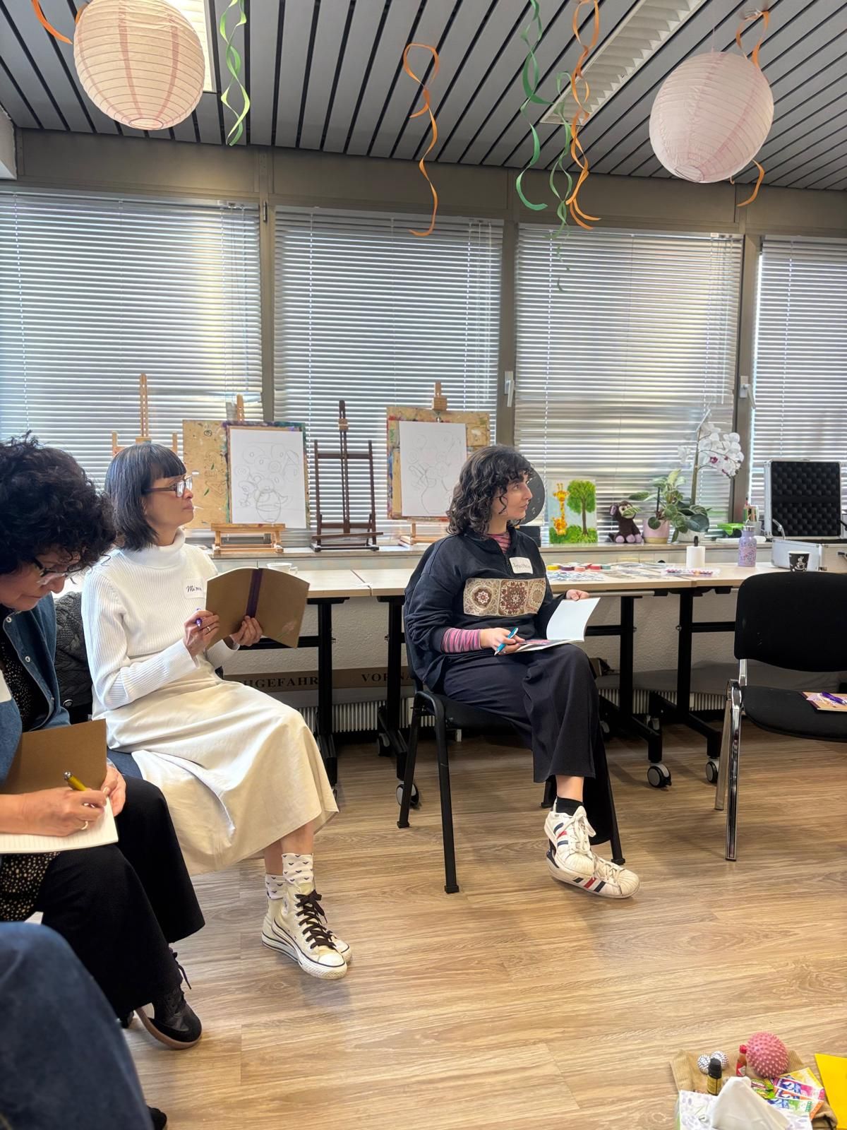 Die Teilnehmerinnen wurden von der Referentin Asal Kosari angeleitet, sich in der kreativen Schreibpraxis zu erproben. Mithilfe kurzer Schreibübungen und Reflexionsaufgaben, wie zum Beispiel „Ich bin stark, weil …“, setzten sie sich mit ihren eigenen Erfahrungen auseinander.