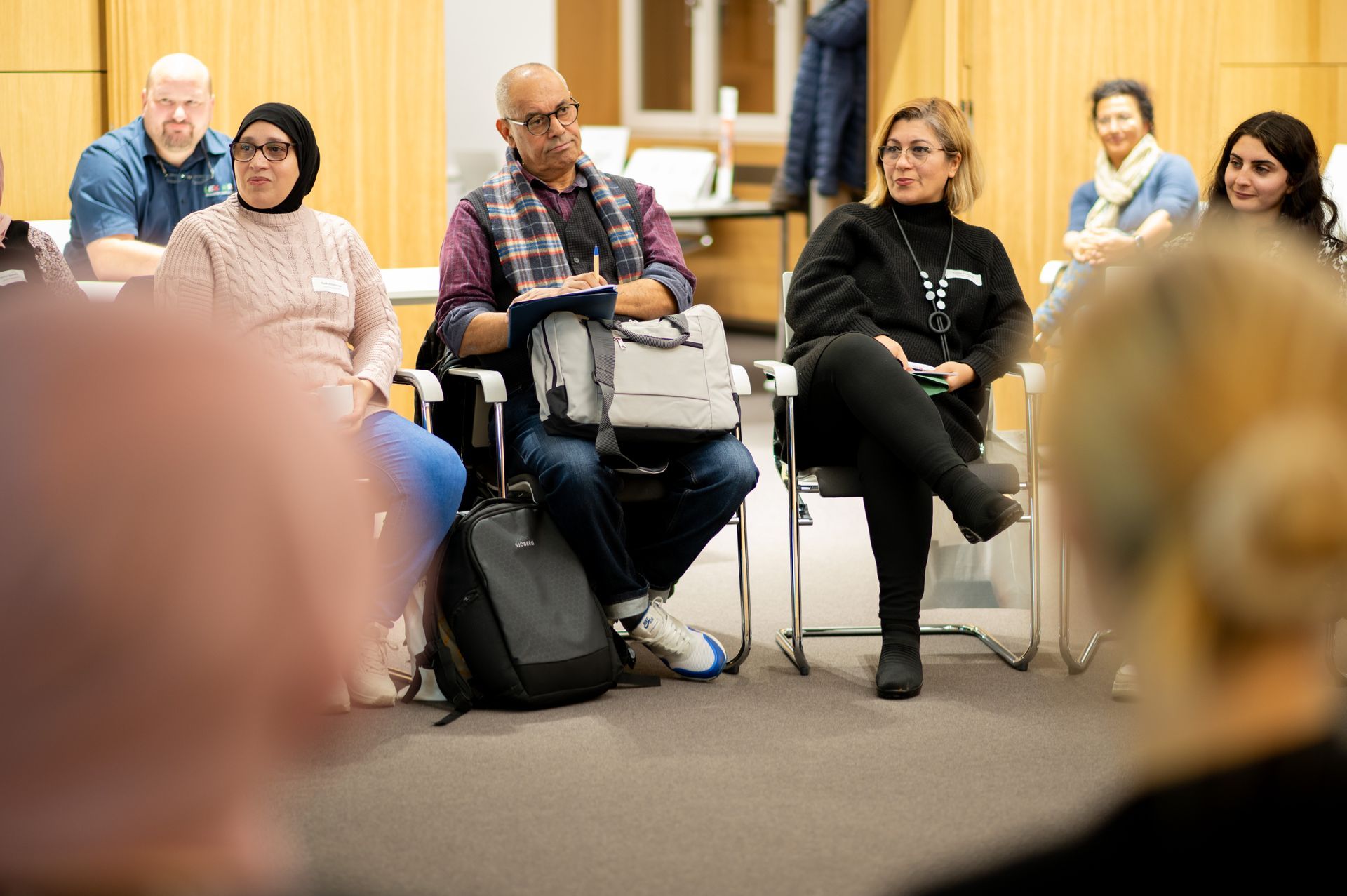 Im Empowerment-Workshop mit Ayfer Candan schärften die Moderator*innen ihre Rolle und lernten, wie sie gut für sich sorgen können, um ihre Resilienz zu stärken. In einer Austauschrunde gaben sie Einblicke in ihre Arbeit und die Herausforderungen, mit denen Eltern konfrontiert sind. Auf einem Markt der Möglichkeiten präsentierten lokale Organisationen ihre Angebote für Familien.